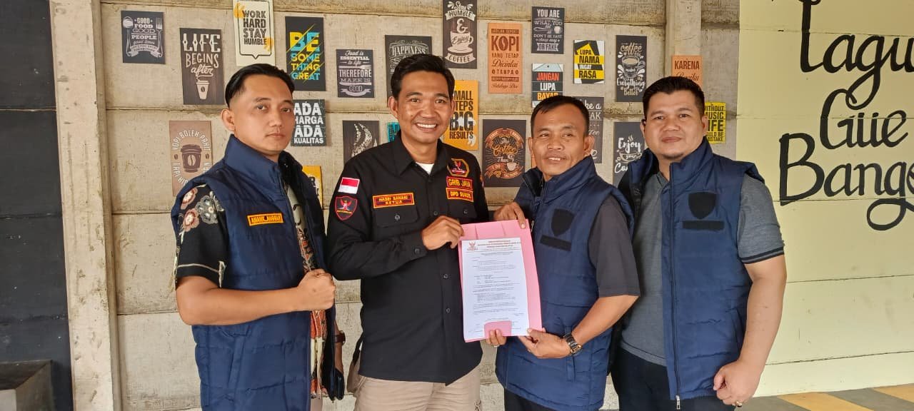 RadarInformasinews.com,- Ketua GRIB Jaya Sumsel Hasbi Sanaki di dampingi Wakil Kepala Bidang ( Wakabid) Kominfo DPD GRIB Jaya Sumsel Usman Gumanti menyerahkan SK Mandat ke Ketua DPC GRIB Jaya Banyuasin.