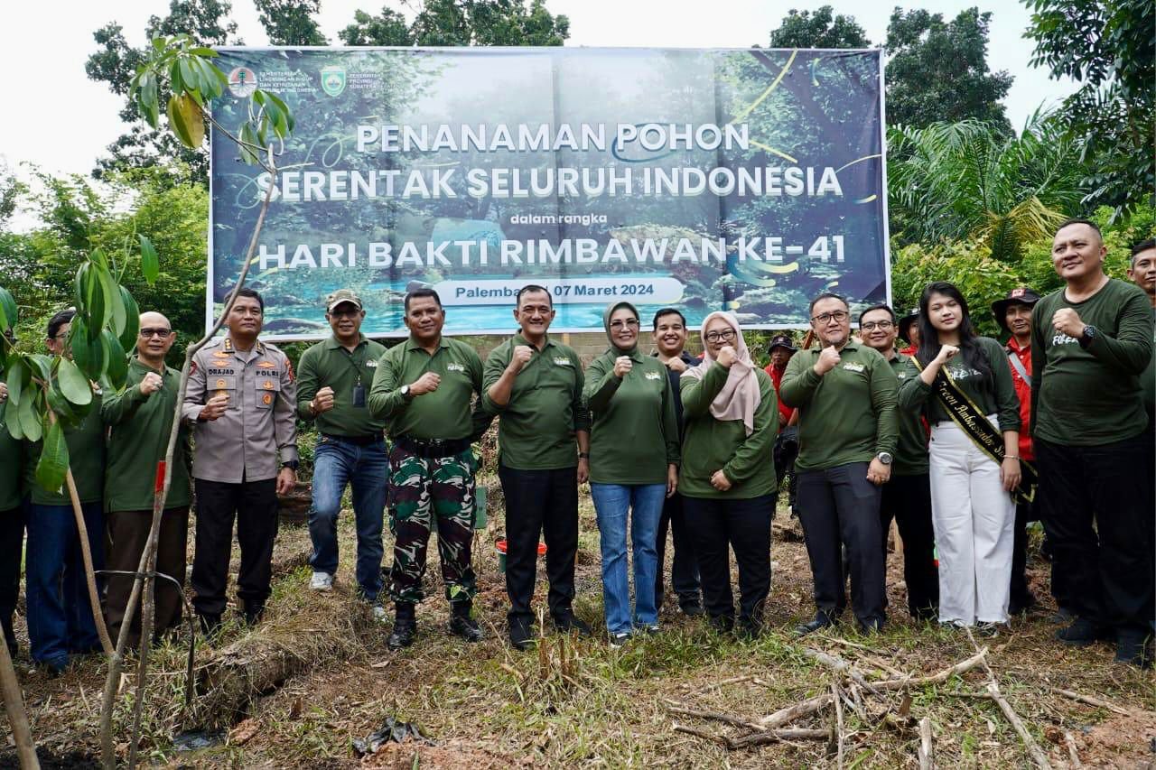 RadarInformasinews.com. Palembang. Pelaksana Harian (Plh) Sekretaris Daerah (Sekda) Provinsi Sumatera Selatan (Sumsel) Edward Candra bersama Inspektur Jenderal Kementerian Lingkungan Hidup dan Kehutanan (KLHK) RI, Laksmi Wijayanti serta Ketua DPRD Provinsi Sumsel R.A. Anita Noeringhati menanam 400 bibit pohon dalam rangka memperingati Hari Bakti Rimbawan ke -41. Kegiatan ini dilaksanakan di Punti Kayu Palembang, Sumatera Selatan, Kamis (7/2/2024).