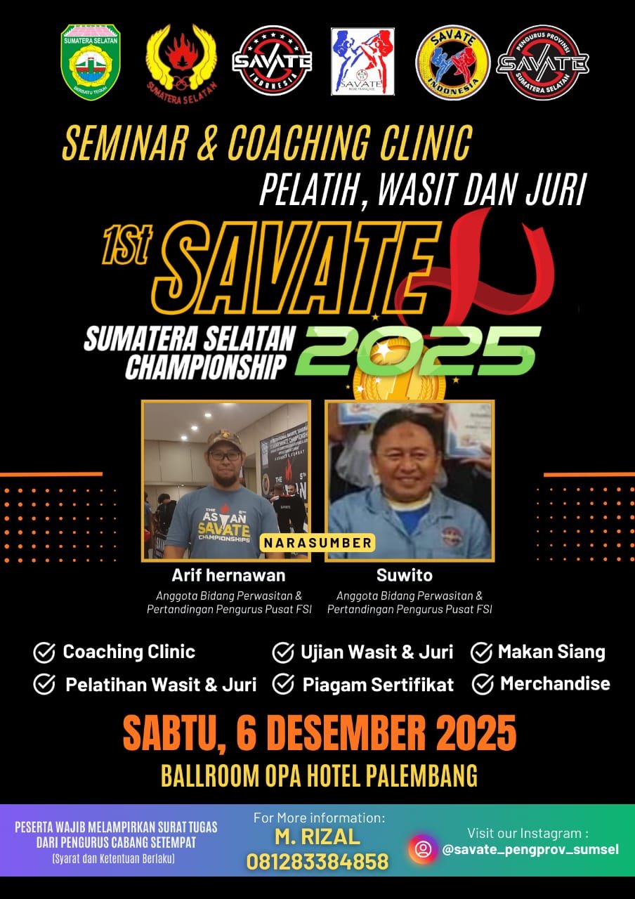 “Jangan lewatkan kesempatan ini. Savate di Sumatera Selatan memiliki potensi besar untuk berkembang menjadi cabang olahraga unggulan. Mari bersama kita wujudkan prestasi atlet daerah hingga level nasional bahkan internasional,” tambah Wakil Ketua Umum Savate Sumsel, Ardiansyah, SKM., MM.