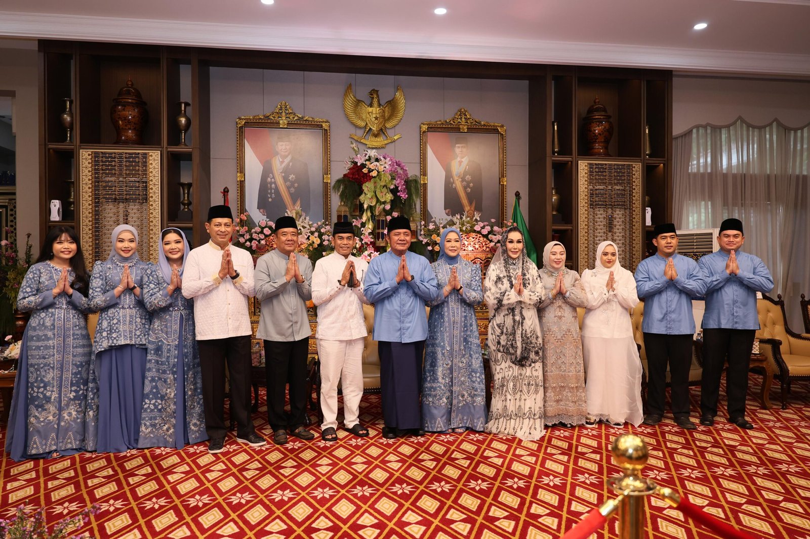 Sumsel.RadarInformasinews.com, Palembang – Kapolda Sumsel Irjen Pol. Andi Rian R Djajadi SIK MH Wakapolda Brigjen Pol. M.Zulkarnain,SIK MSi Ketua Bhayangkari Sumsel Ny Dewwy Andi Rian bersama Wakil ketua Ny Monika Zulkarnain dan Pengurus lainnya serta pejabat utama Polda Sumsel, Senin (31/03/2025) siang menghadiri Halal Bihalal dengan Forkopimda Sumsel dan tokoh masyarakat di Griya Agung jalan Demang lebar daun Palembang